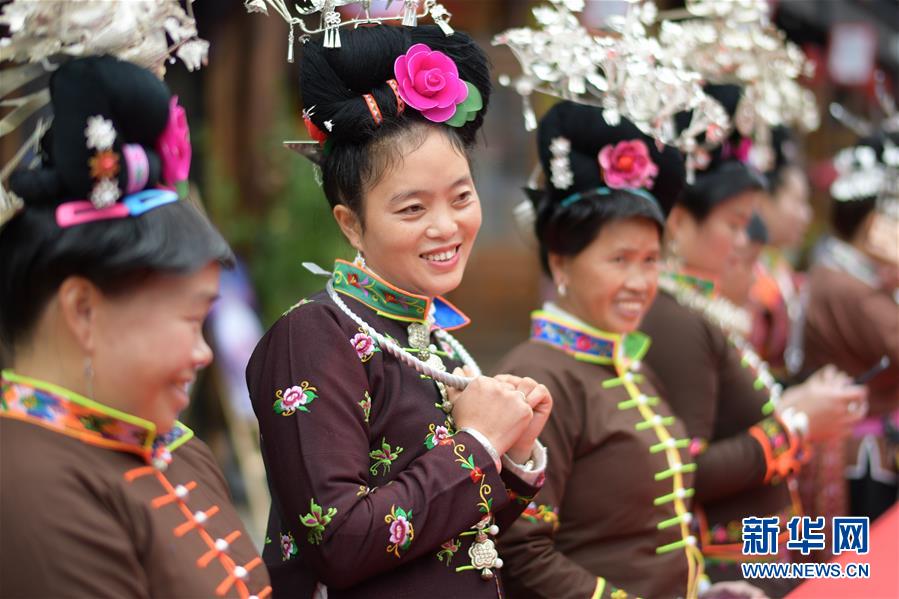 10月18日,在“中國丹寨非遺周”活動中,著盛裝的苗族群眾參加長桌宴。 10月18日,首屆“中國丹寨非遺周”在貴州省黔東南苗族侗族自治州丹寨縣萬達小鎮(zhèn)開幕。非遺主題活動將在一周時間內,通過論壇、展示、演出、文創(chuàng)大賽等活動,為當地群眾和游客展現豐富多彩的非遺盛宴。 新華社記者 楊楹 攝