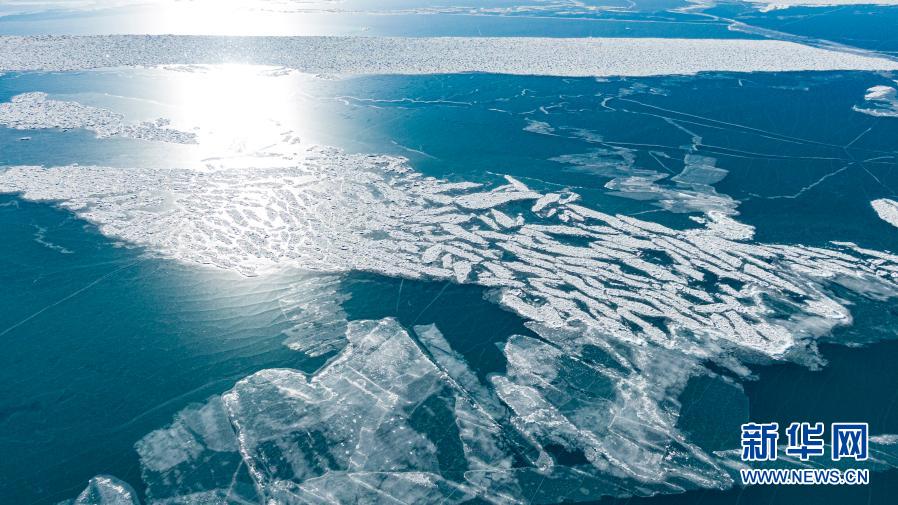 湖面結(jié)冰的納木錯(1月29日攝,無人機(jī)照片)。