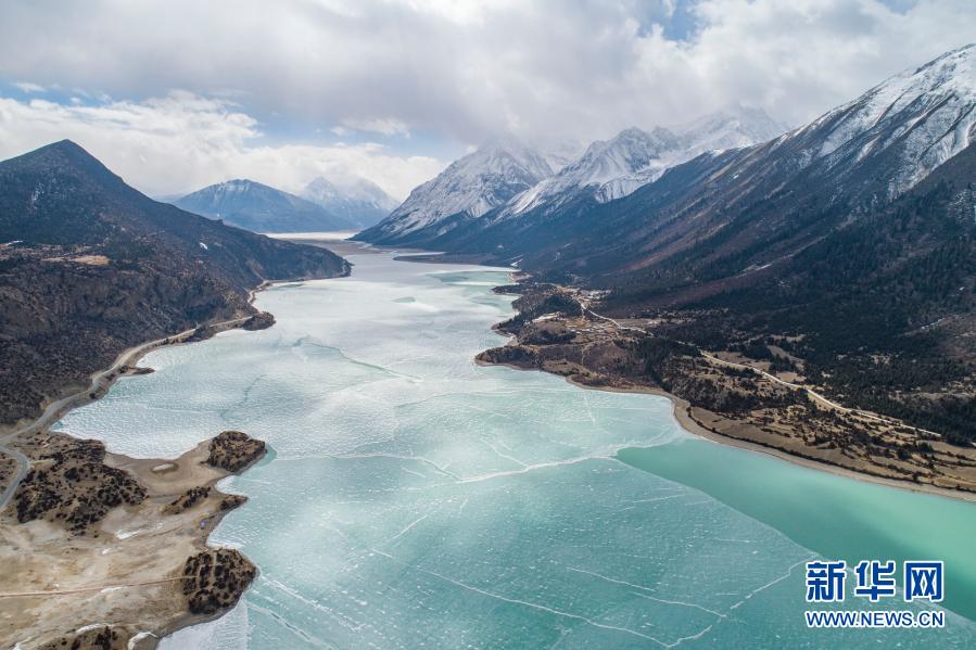 這是2月16日拍攝的然烏湖(無人機照片)。然烏湖位于西藏昌都市八宿縣境內,是帕隆藏布江的主要源頭。然烏湖是由于山體滑坡或泥石流堵塞河道而形成的堰塞湖,因為緊靠川藏公路而為許多旅行者所熟知。新華社記者 孫非 攝