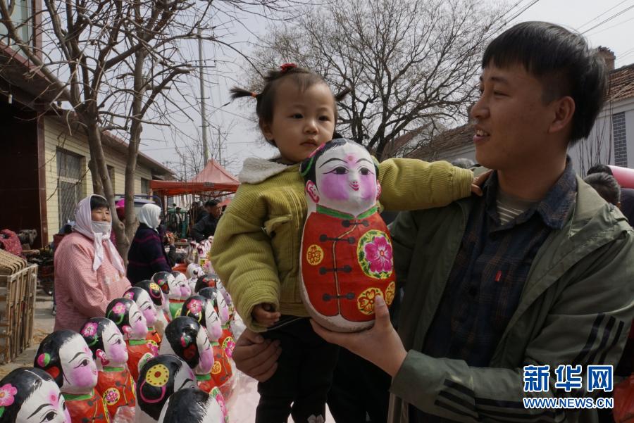 3月14日,游客在山東省惠民縣皂戶李鎮舉辦的泥塑文化節上選購泥娃娃?;菝窨h泥塑歷史悠久,農歷二月初二有捏泥塑、跑秧歌的傳統。
