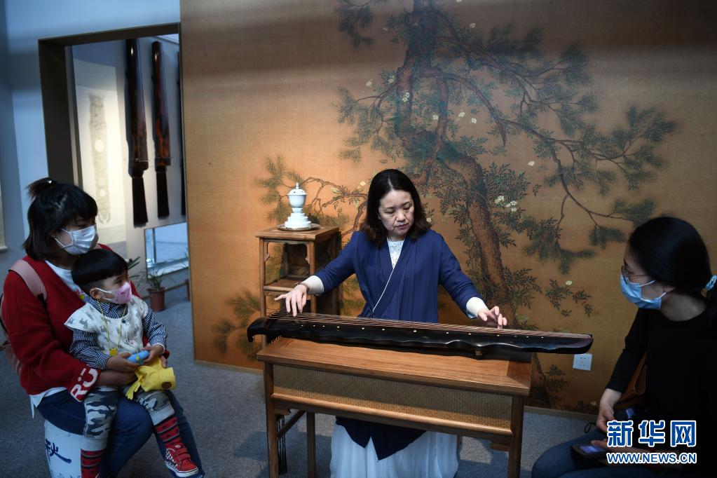 3月31日,參觀者在首都博物館近距離欣賞愛好者演奏古琴。