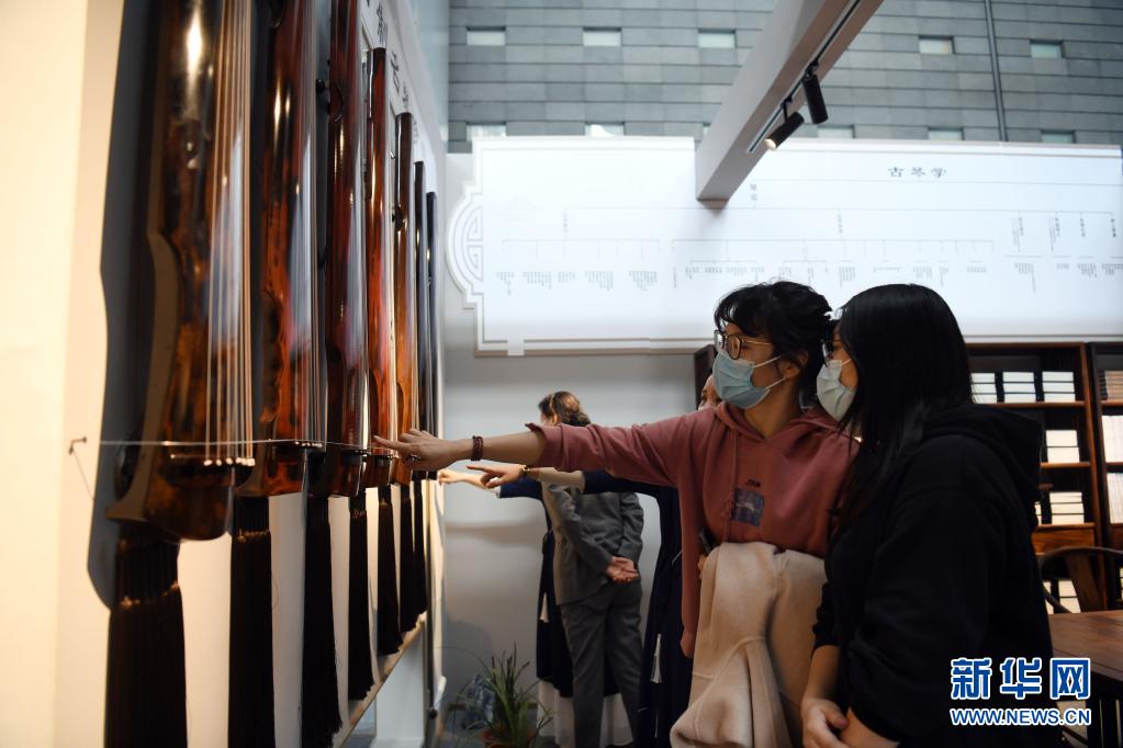 3月31日,參觀者在首都博物館欣賞展出的古琴。