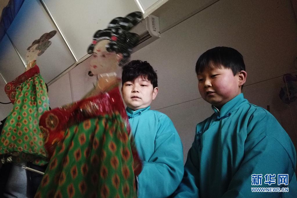 精靈夢皮影藝術團的演員在排練皮影戲(3月19日攝)。新華社記者 許雅楠 攝