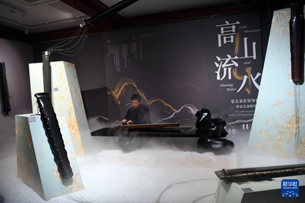 10月18日,藝人在展覽現場彈奏古琴。新華社記者金良快攝