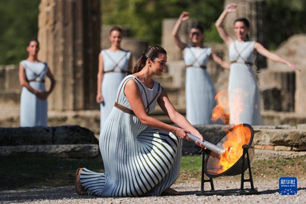 當日,北京冬奧會火種在奧林匹克運動的發祥地——希臘伯羅奔尼撒半島的古奧林匹亞采集成功。在有著兩千多年歷史的赫拉神廟遺址前,奧運火種再次為北京點燃。