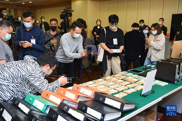 11月28日,媒體記者在新聞發布會上拍攝證物。