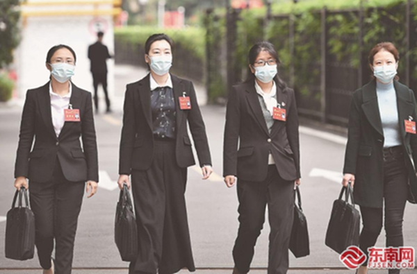 28日,代表們意氣風發走向會場。本報記者 吳恩兒 攝